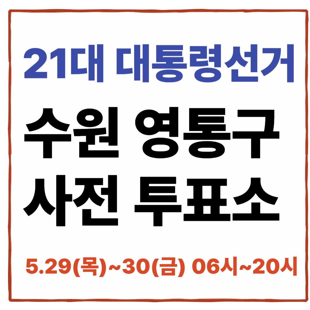 | 원천동사전투표소 | 원천동행정복지센터(원천동주민센터, 3층, 다목적실) | 경기도 수원시 영통구 중부대로 339 (원천동) |