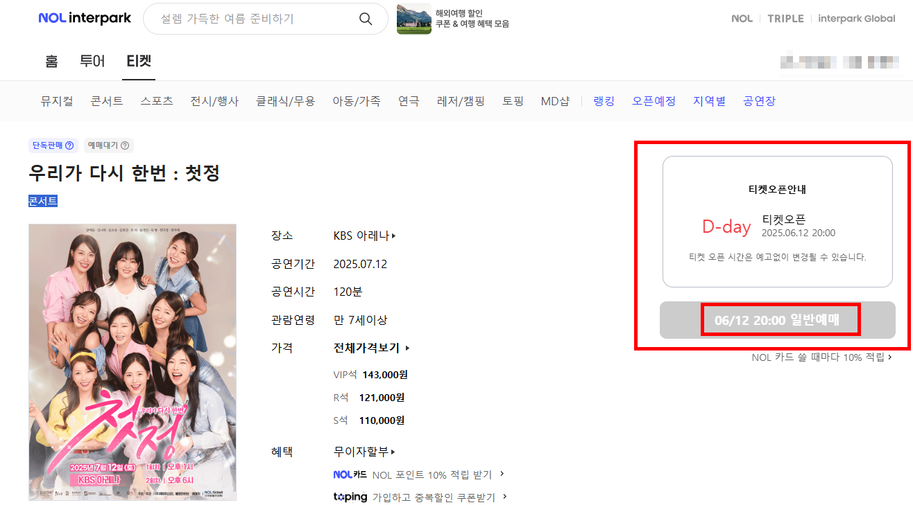 - 1차 일반 예매: 2024년 6월 12일(목) 오후 8시 ~