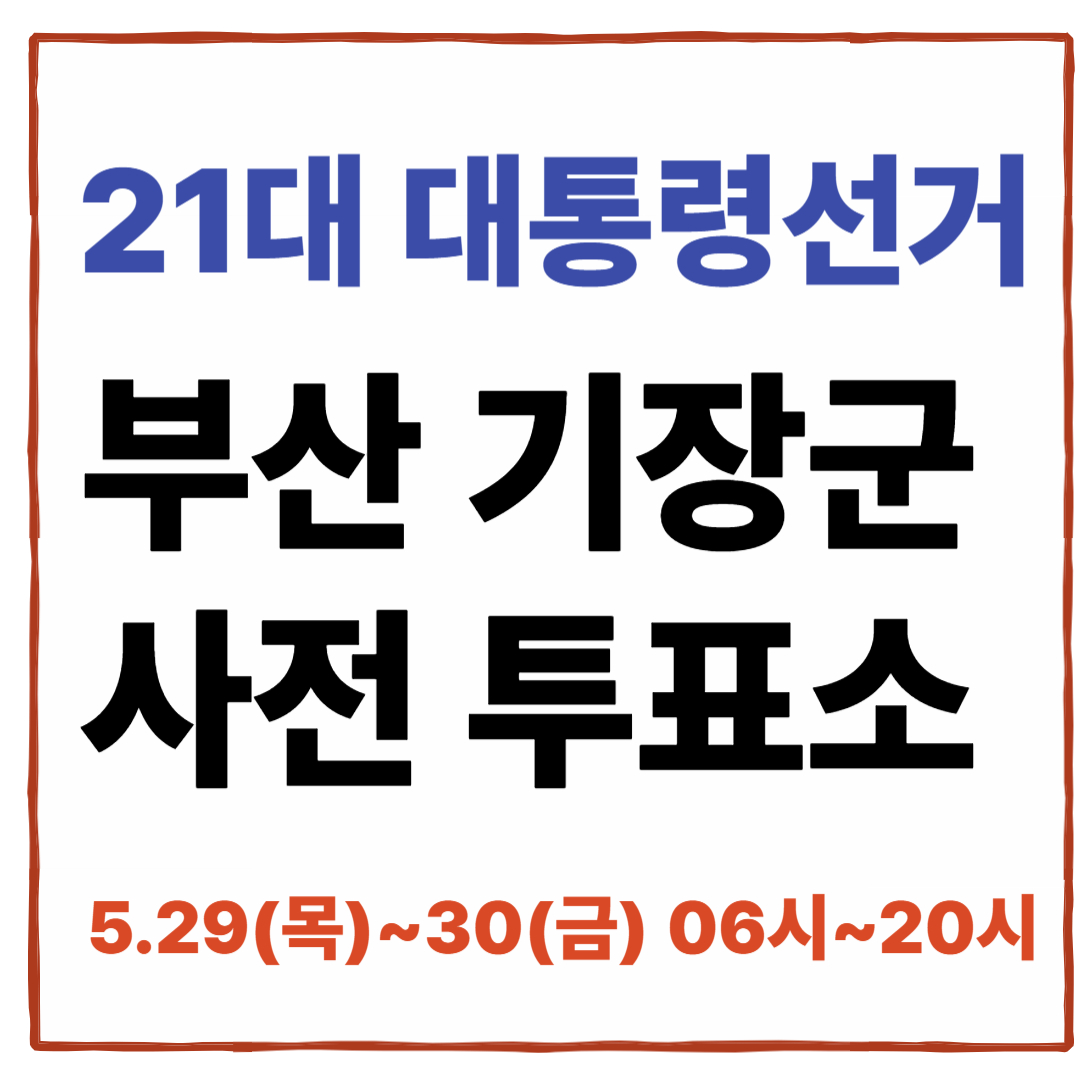 | 기장읍사전투표소 | (구)기장읍행정복지센터 1층 대강당 | 부산광역시 기장군 기장읍 차성동로5번길 10 (구)기장읍행정복지센터 |